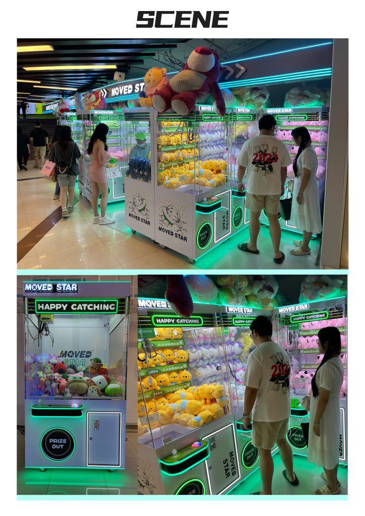 2、Control the joystick to move the claw. 3、Press the button to catch the plush toy. 4、Take out the plush toy from the prize door if you get it.If you not,the second claw will start and you will have the second chance. |